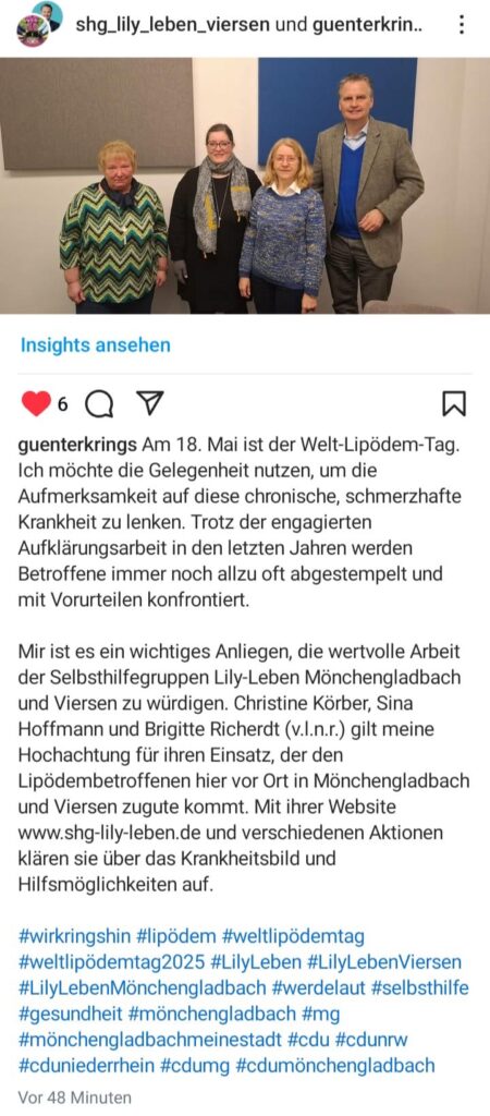 Posting zum Weltlipödemtag von MdB Dr. Krings mit Mitgliedern unserer SHG, 18.05.2025